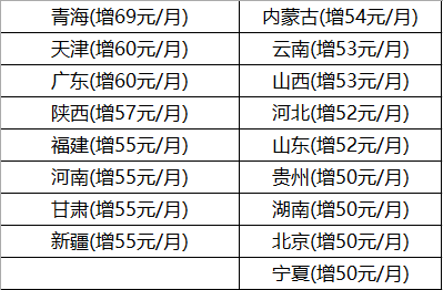 第二梯隊定額調整每月超過50元的省份共17個,分別是: